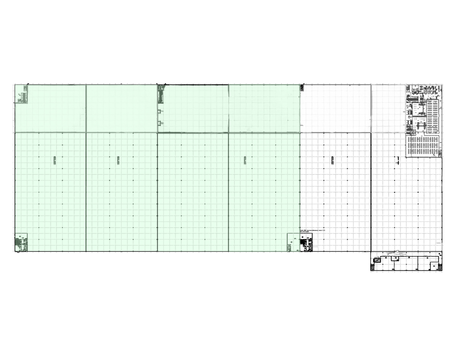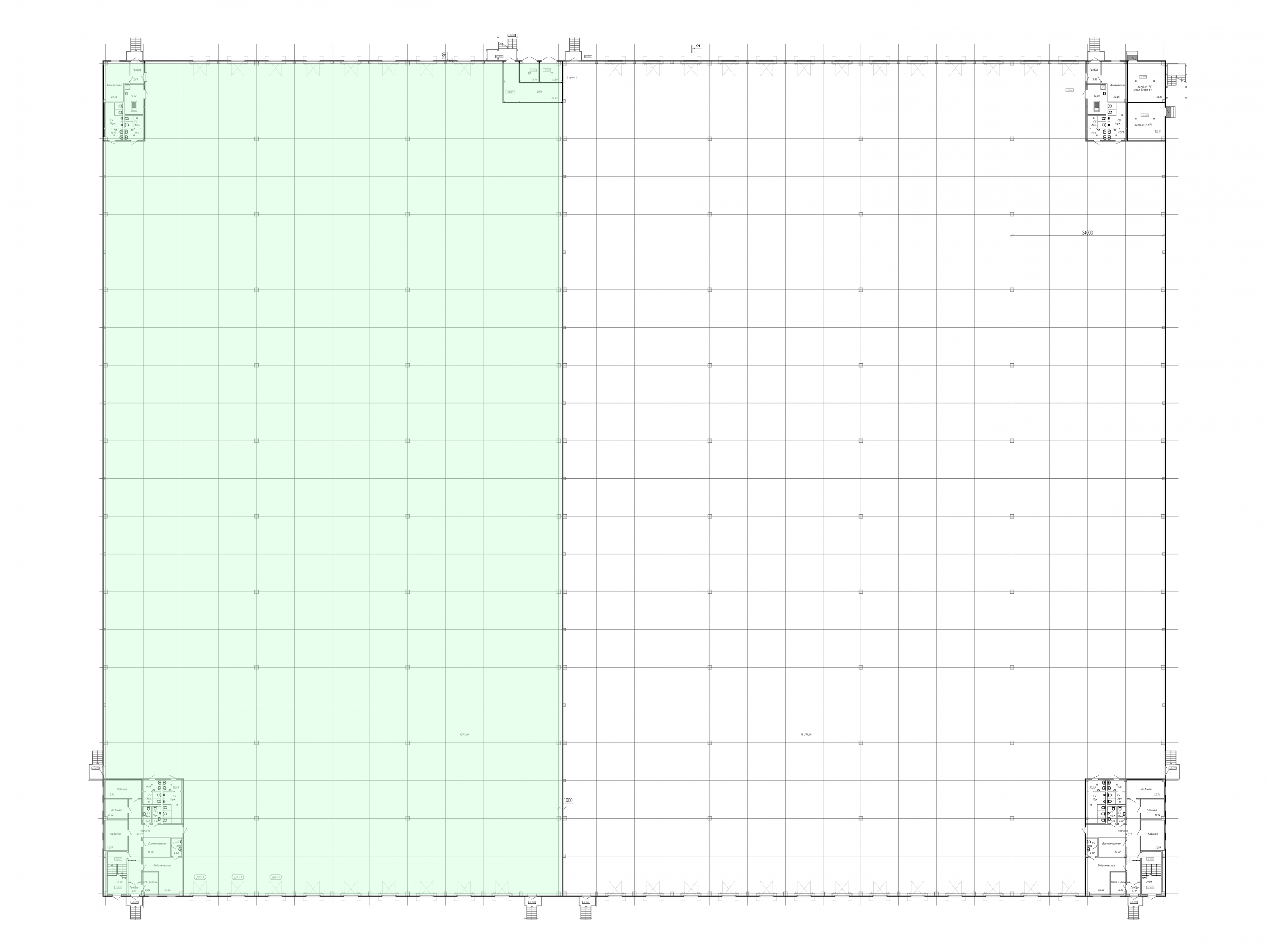- Шаг колонн: 12×24 м — позволяет максимально эффективно организовать внутреннее пространство